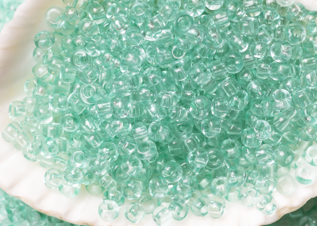 Бисер Чехия круглый 10/0 50 г 01264 прозрачный бледный светлый бирюзово-зеленый зольгель окрашенный