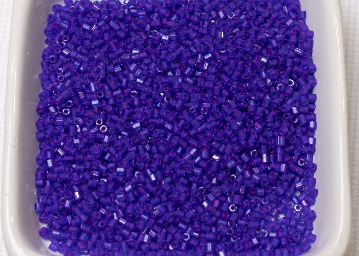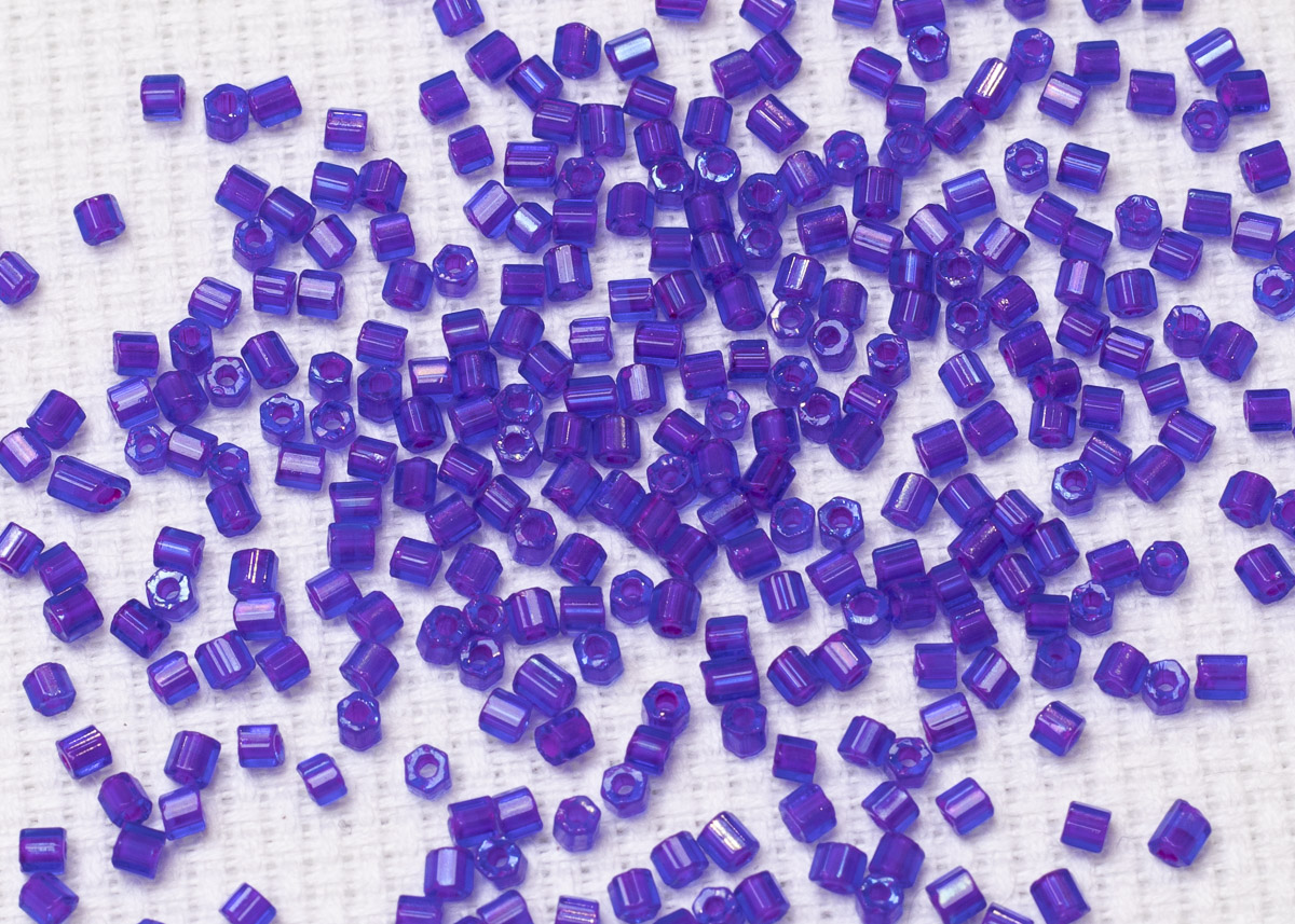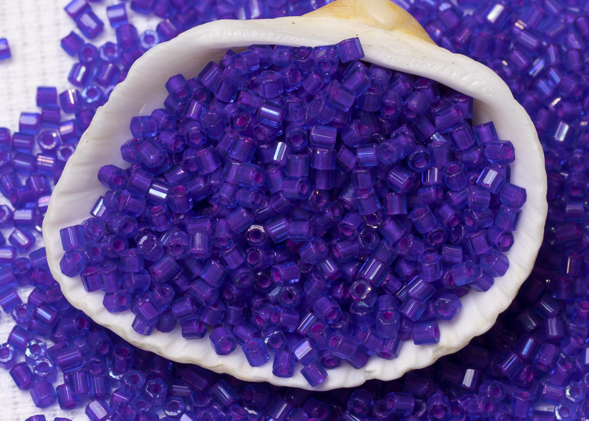 Бисер Чехия рубка 10/0 50г 34057 фиолетовый, розовая линия внутри