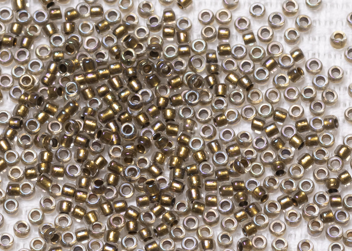 Бисер Япония круглый 15/0 10г 0262 хрусталь/золото, окрашенный изнутри