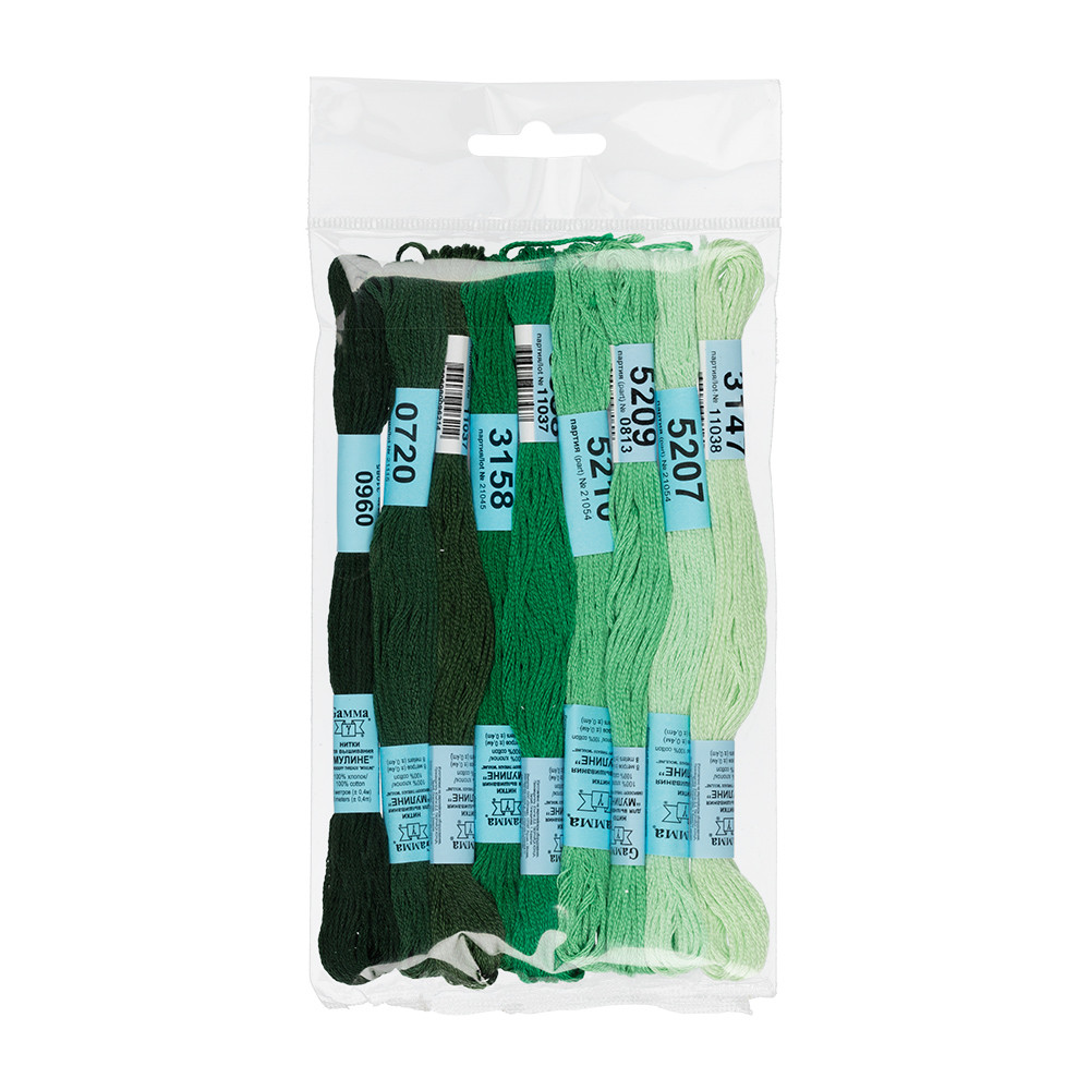 Нитки для вышивания Gamma набор мулине № 10 100% хлопок 9 цв. x 8 м Зеленый